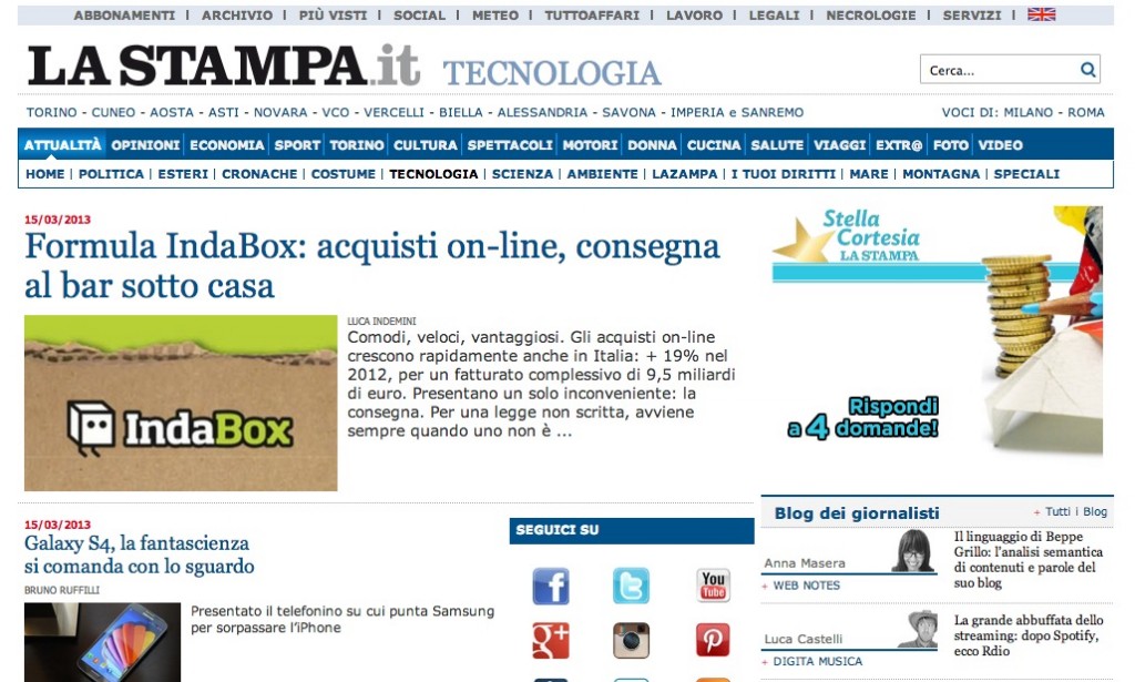 Oggi, nella sezione “tecnologia” del sito www.lastampa.it, trovate un articolo che parla di noi!